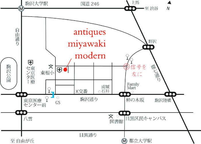 アクセス 都立大学駅より 改札を出たら、目黒通り方面へ出ます。 目黒通りを渡りそのままずっとまっすぐ、 左手に郵便局を過ぎ、区民キャンパスを過ぎ、柿の木坂の信号に出ます。 それが駒沢通りです。 駒沢通りも越えて、次の信号を左に曲がります。 そのまままっすぐ200m先の左側がお店です。 さっさと歩いて15分以上かかりますので、都立大学駅から東京医療センター行きの バスを使うのも便利です。東京医療センターからですと徒歩5分です。 さらにGoogle Mapで見る→
